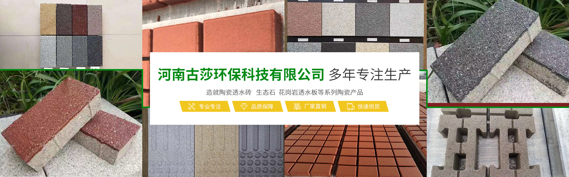 河南古莎環保科技有限公司總坐落于交通樞紐城市鄭州,是一家具備研發、生產、銷售能力為一體的綜合性現代化陶瓷企業。本公司專業生產經營生態陶瓷透水磚、生態鋪石、PC仿石材透水磚、PC仿石材景墻磚、普通透水磚、燒結磚等系列產品,完善的研發團隊,完善的生產流水線設備,打造完善的陶瓷企業。古莎環保科技現代化陶瓷企業是美化城市,改善生活環境質量的生態環保產品,可廣泛應用于公共建筑廣場、城市道路、公園、藝術景觀、廊道、房地產、別墅住宅小區、地鐵口、車站、高速公路服務區等。古莎環??萍荚谠刑沾善髽I基礎上,另拓展園林綠化、市政施工、瀝青包工包料施工、公路維修等業務板塊,專業培訓了一些園林綠化、市政施工技術人員,并有多年的施工養護經驗以及建筑工程經驗。保證市政工程施工質量以及園林綠化后期養護規范化、專業化。古莎環??萍妓裱钠髽I與品牌發展思路,是奠定在品質與產品應用之上。環保理念由我們共同倡導,理性思考,以推進步,感性溝通,以共建優越。古莎環??萍寂c大家真誠合作,攜手共進,為助力海綿城市建設,建筑高品質的綠色城市生活貢獻一份力量!